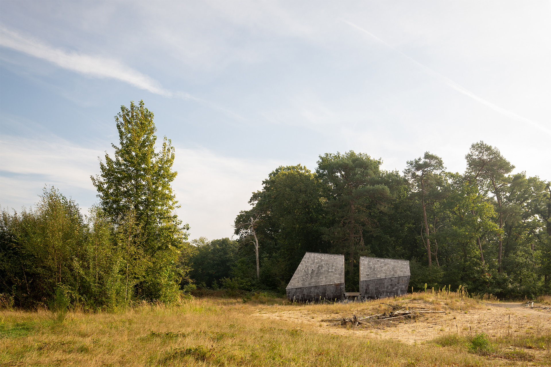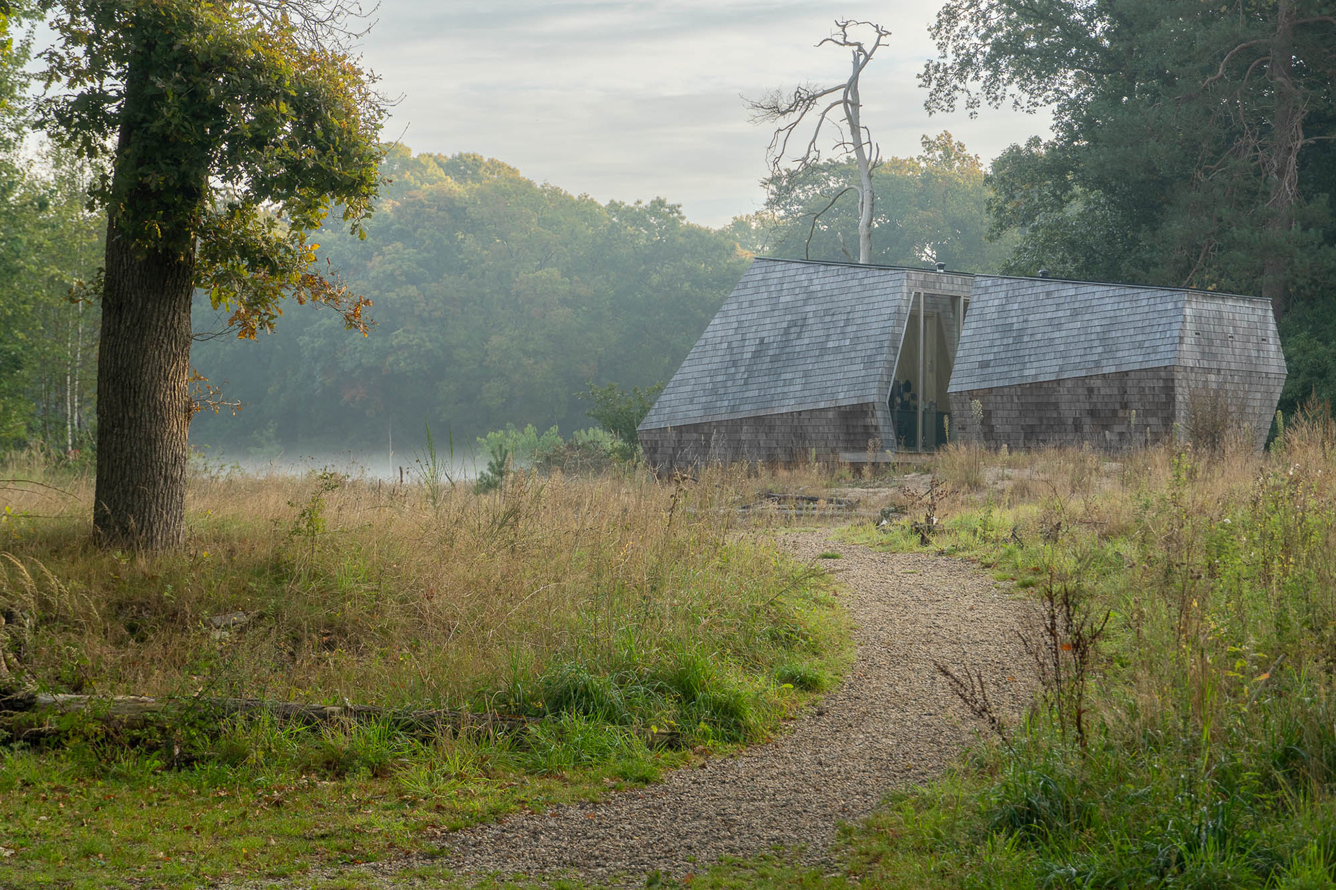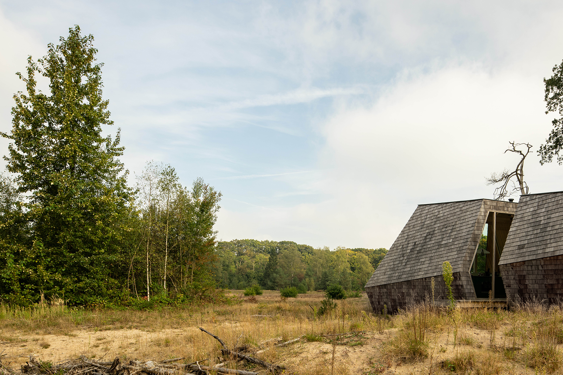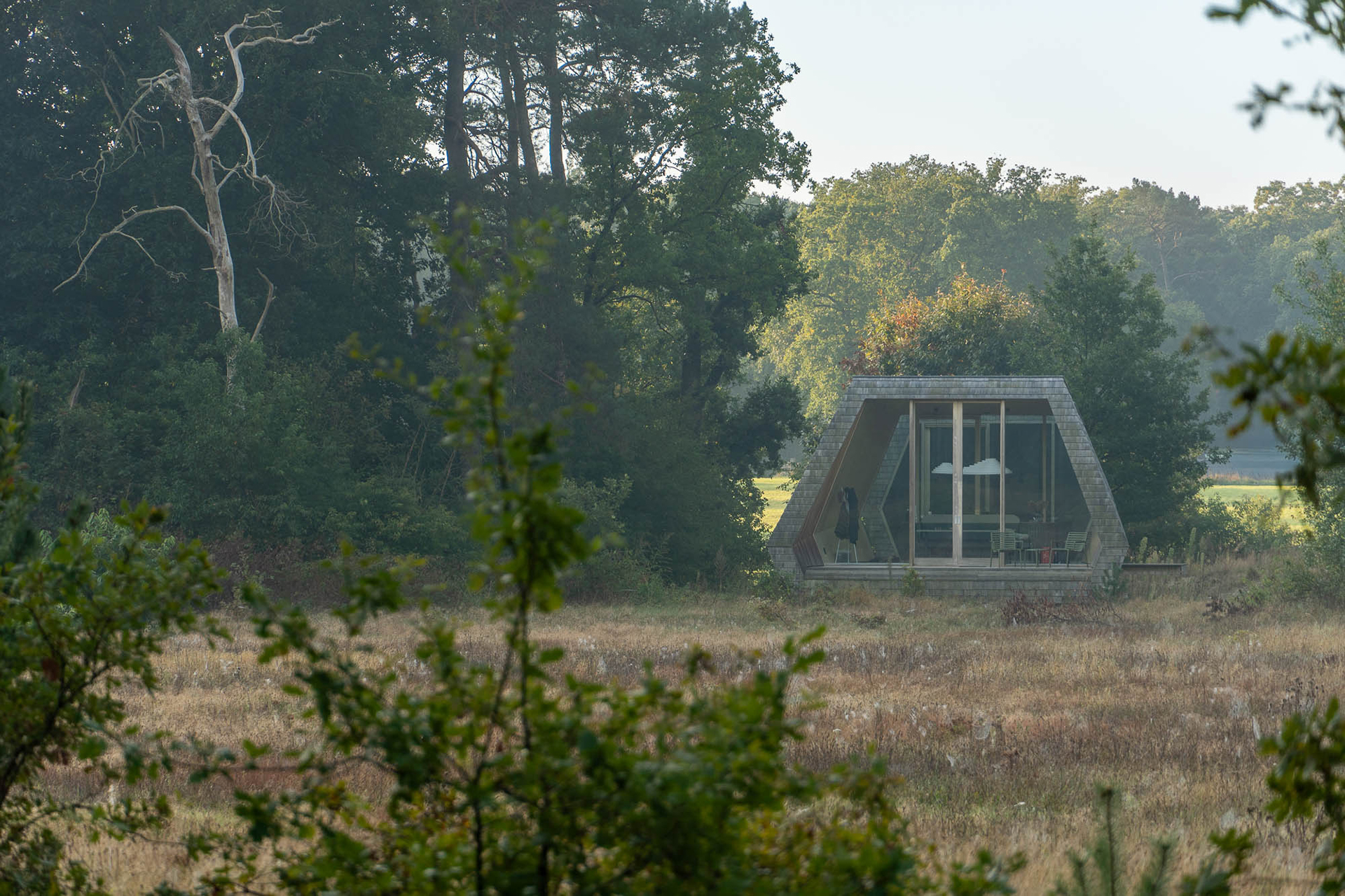 De beschermende functie van een huis is de laatste decennia zo sterk doorgevoerd dat we verder af zijn komen staan van de natuur. De gebouwde woonomgeving is verworden tot een barrière tussen mens en natuur. Naast het grote oog van de folly is de snede in het volume een fysieke doorbraak in deze barrière. In de snede tussen de woonkamer en slaapkamer is de bewoner buiten. De Ooggetuige zoekt de nabijheid van de seizoenen, de zon, de temperatuurverschillen, de sterrenhemel, het bioritme – zij worden je huisgenoten.