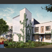 Aan de Hogestraat, centraal gelegen in het historisch centrum van Aalten, zijn twee lege en verouderde winkelpandjes gesloopt. opZoom heeft voor deze locatie het ontwerp gemaakt voor een kleinschalig en duurzaam appartementencomplex met 11 nultredenwoningen voor woningcorporatie de Woonplaats.