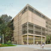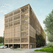 ontwerp voor de mobiliteitshub met 450 parkeerplaatsen, commerciële ruimte en energiehub