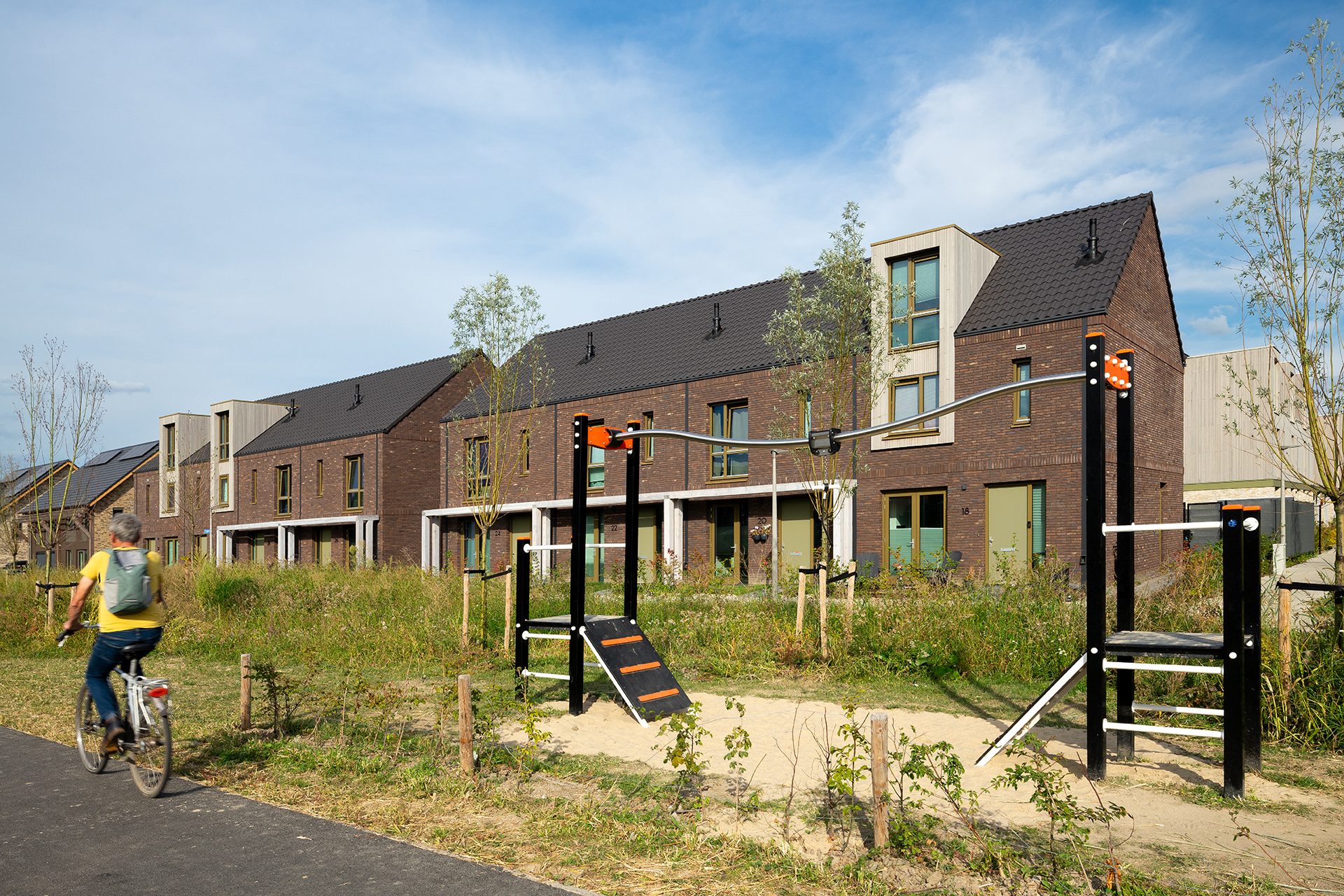 Diverse maatregelen zijn genomen ter bevordering van de natuurinclusiviteit en biodiversiteit, zoals gevarieerde beplanting rondom de pergola’s en veranda’s, gemengde hagen in de voortuinen, sedum op platte daken, gevelgroen, nestkasten en insectenstenen. De combinatie van stedelijke en landschappelijke kwaliteiten maakt Overbos tot een geweldige groene en duurzame buurt.