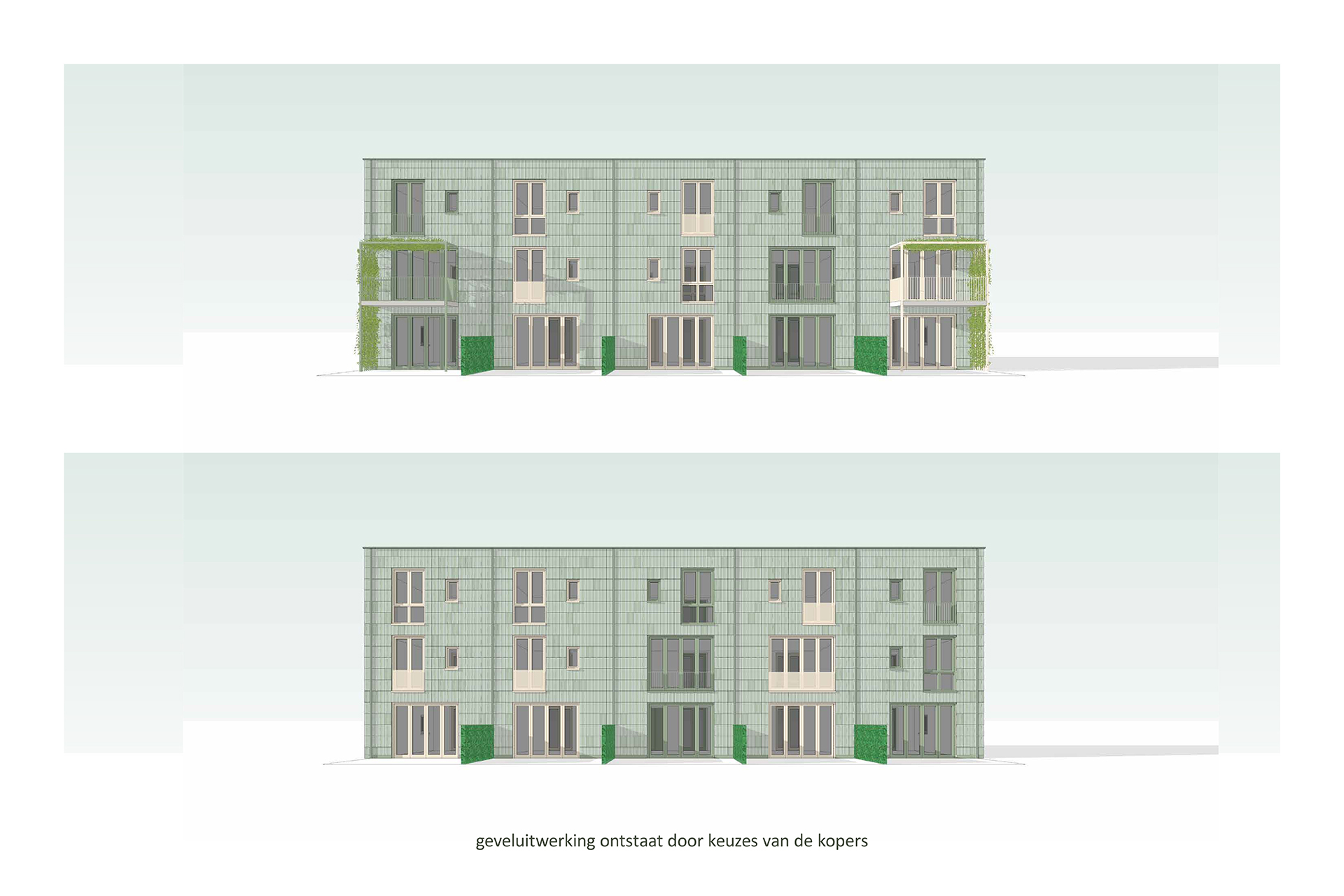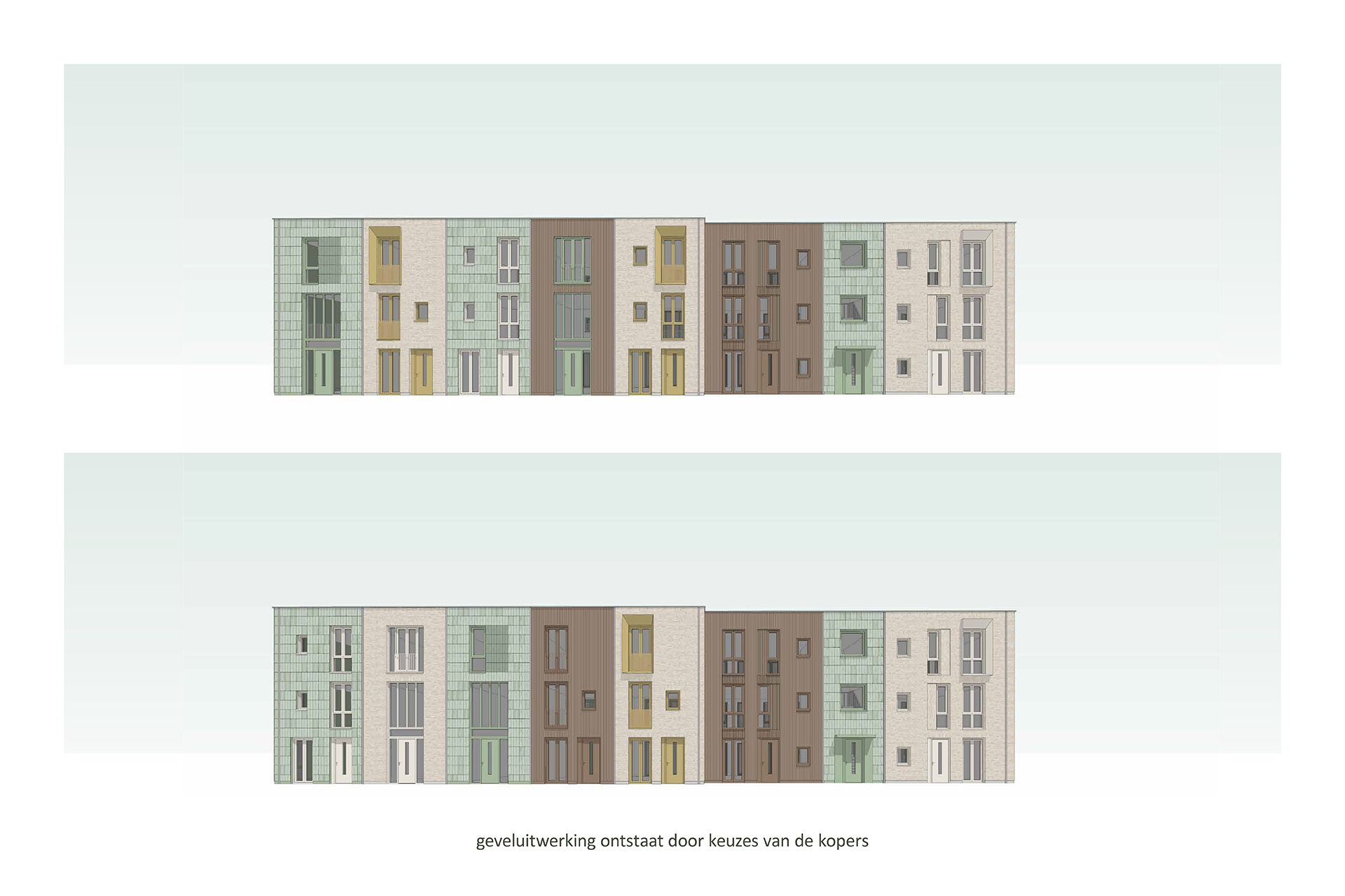 De keuze van de plattegrond wordt zichtbaar in de gevel. Elke plattegrond heeft een bijpassende gevelindeling met grote raampartijen, zodat de parkomgeving van het Vadapark ook in de woning wordt ervaren. Dit gevoel wordt verder versterkt door de verschillende kopersopties. Kiest men ook voor een Frans balkon, vide of een uitkragend balkon? Dan heeft dat invloed op de gevel.