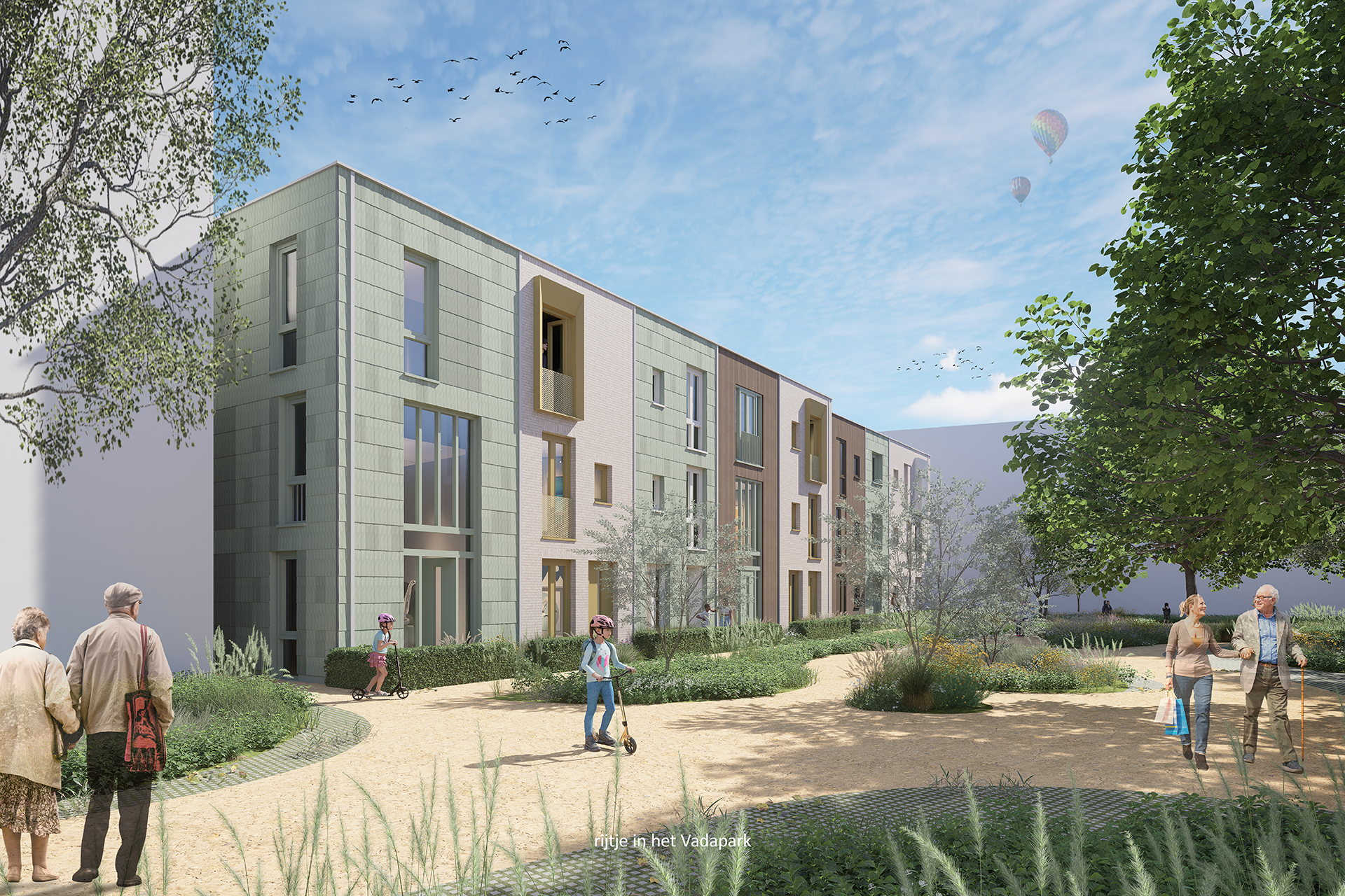 Het totale project Vadapark in Wageningen betreft een nieuwbouwontwikkeling voor 260 woningen in een parkachtige omgeving. In het plan worden verschillende woningtypes en woonvormen opgenomen: CPO-groepen, grondgebonden woningen, zelfbouwkavels, koopappartementen, sociale huurwoningen, middenhuurwoningen en verandawoningen. Zo vinden vele verschillende doelgroepen hun plekje in het Vadapark. Vijf van de grondgebonden koopwoningen staan aan de entree van het park, aan de Costerweg. Het tweede rijtje met vijf grondgebonden woningen en zes appartementen staat midden in het park.
